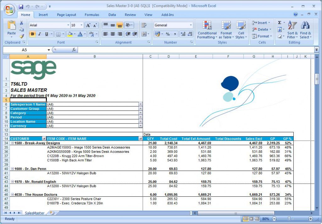 Sage 300 ERP Business Intelligence empowers you to quickly and easily obtain the information you need for operations and strategic planning from your Sage 300 ERP solution. Effortlessly create reports and analyze data, utilizing the familiar Microsoft Excel application. With Business Intelligence you can spend more time focusing on information analysis and interpretation and less time pulling the data together. You have the freedom to build your business intelligence solution to fit your business. Sage 300 ERP ships with a single-user license for the Business Intelligence Report Manager.